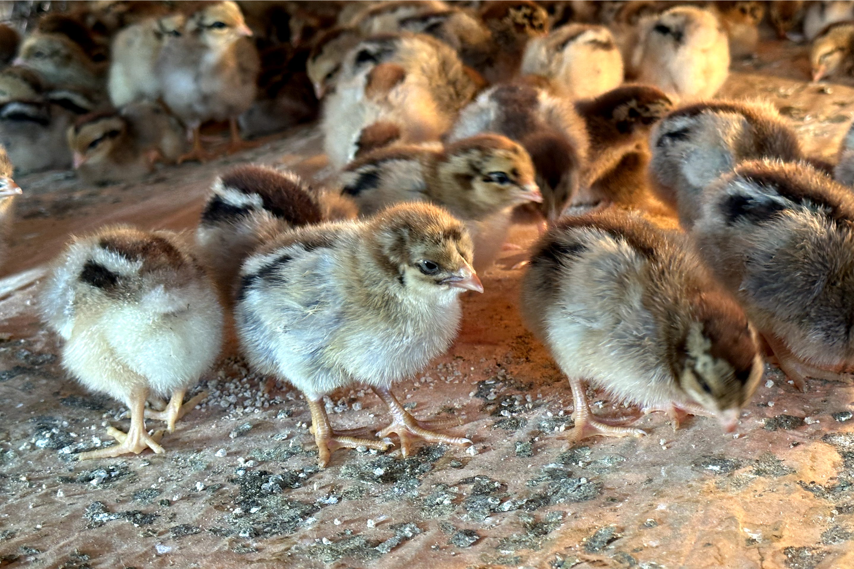 每隻雞科學餵養足足100天以上,達到飲食均衡。選用玉米、麩皮、豆粕、花生粕、油料籽等谷物。搭配蔬菜補充維生素